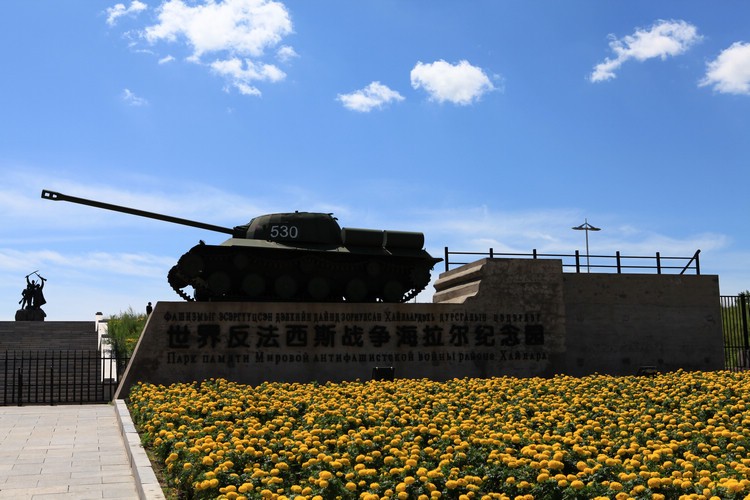 世界反法西斯战争海拉尔纪念园是在原侵华日军海拉尔要塞遗址上建立的,占地面积110公顷,分为地上、地下两部分,其中地上建有海拉尔要塞遗址博物馆、战场遗迹、模拟战争场景等设施;地下工事遗迹复原了日军司令部、士兵宿舍、卫生室、通讯室等。