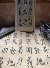 无事可干,但必须找些事干,借此来转移注意力,减轻头昏脑胀的混沌感。于是铺了纸,倒了墨,涂抹起大字来。
