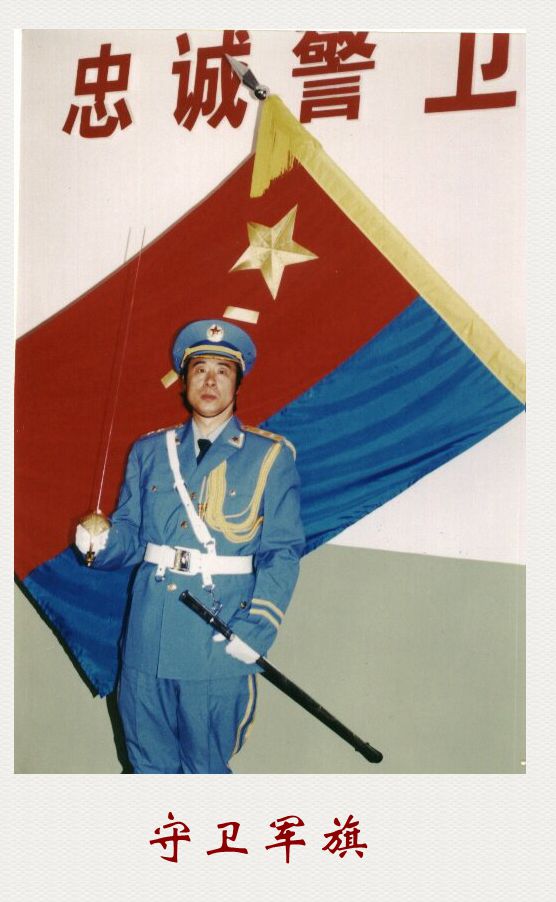 在中午短暂的休息时间里,战士们热情地邀我参观了他们的内务和荣誉室。荣誉室的奖杯、锦旗、照片为我揭开了谜底,我这才知道了这些战士的特殊身份,这是一支礼兵。他们的任务就是接受外国武装力量的首脑和政要的检阅,以此展示我们的国威、军威。从外国首脑和政要的题字留言中,我懂得了荣誉和责任在军人心里的分量。这让我心中充满了崇敬。他们拿来了崭新的礼兵服和指挥刀,让我着实地过了一把瘾,圆了我从年轻时就一直做的军人梦。礼兵服是军装美的极品,当我戎装佩剑,守卫在火红的八一军旗下的时候,感到了一种从未有过的庄严和无尚的荣光,尽管这只是一个很短暂的时刻,但我学会了最标准的军姿,体会了从未有过的神圣感。几十年的愿望,瞬间如愿以偿,就像是在梦中,令人难以置信。