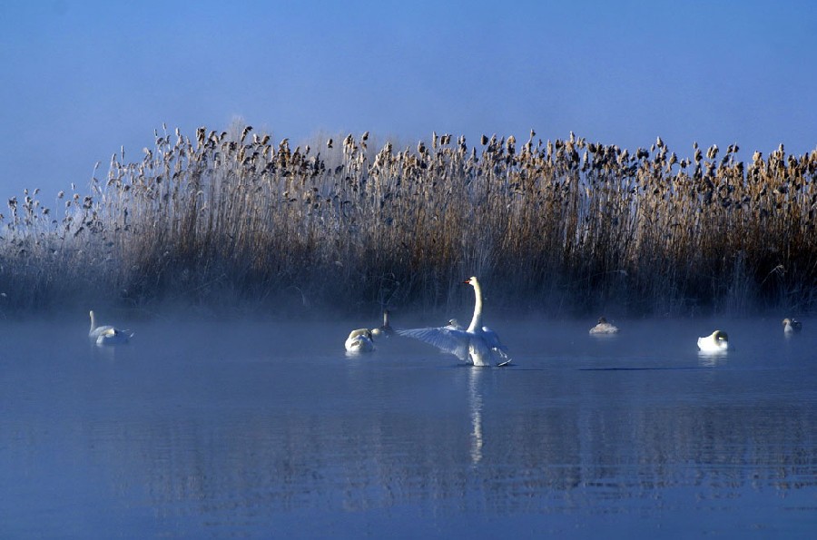 巴音布鲁克大草原由于受人类活动影响较小,保存了世界上多种的稀有物种,成为天鹅等野生动物理想的繁殖栖息地。第二天,我们进入草原景区最先看到的动物就是天鹅,它们在河渠边悠闲地徜徉……