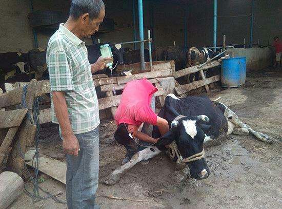 没等摩托车停稳,钱拐子就把二柱子从车上拽了下来,拉着他直奔牛棚,“快,救救大花吧。”