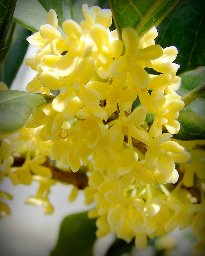 我的脑海里时常会浮现出那金色的油菜花铺满起伏的坡田地,满山岗绽放的白洁、大红、纯紫色的山茶花吐着诱人的芬香、更有那一株高大的桂花树,在八月的金秋小米粒似的集结在枝头,幽幽的暗香飘在我们生活的小院空间里,醉了我的心田。