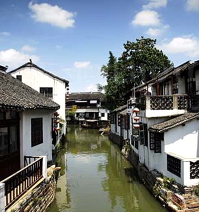 五一节刚过,我们避开了五一劳动节人山人海拥挤的场面,4日那天来到古镇,非常舒适,游人适中,昨天刚下了一场雨,古镇被雨水冲涮得更加干净。一到入口,青灰色的砖瓦,雪白的粉墙,一座颇具古代风格的房子便让我们充分领略到了古镇的风情。走进古镇,一刹那集江南风景之美的古镇,让我们兴奋不已:一条碧波荡漾的河流泛着微微的波浪,河边柳树枝叶繁茂,绿意盈盈,再加上古代风格的典雅明清建筑衬托,让人仿佛真的回到了古代江南那生态平衡的自然风景。我心中默默念起了“老树枯藤昏鸦,小桥流水人家”的诗句。