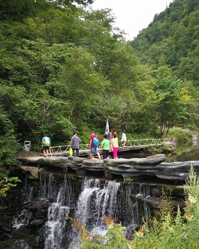 我们沿蜿蜒的溪边小径迤逦而上。脚下的木阶在细雨的冲刷下干净温暖,仿佛很是欢喜我们的到来。山中溪水潺潺,大大小小的瀑布似少女明媚的眼眸,羞涩而奔放地从山顶顺势而下。溪上奇石林立,山中松鼠不时在树上觅食,时而有小桥点缀于水面,山中的皱石和重重叠叠的树木,像一幅幅国画悬挂在那里。一路前行,山泉叮咚似悠扬的锦瑟声声,为这远古凤凰栖息之处,传递着人间亘古的音乐。应接不暇的美景,醉了我眼,也醉了我心。