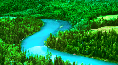 从地理角度看,喀纳斯景区在北纬48 度以北,湖面海拔1374米,南北长24公里,平均宽约1.9公里,面积达45.73平方公里。这是一个典型的座落在阿尔泰深山密林中的弯月状的高山湖泊。湖四周雪峰耸峙,绿坡拥翠;湖光山色,美不胜收。一湖弯月,似青罗带,胜青罗几分豪迈;如眼波横,多眼波几多灵动。两岸峻岭,说是眉峰聚,少了高耸之气概;比作碧玉簪,缺了巍峨之状貌。能将北国雄奇风光与江南水乡秀色结合的如此完美,除了喀纳斯,不作他想!只有喀纳斯,绝无仅有!