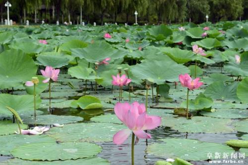 这时,爱人指着不远处一池荷花兴奋地对我说:“快看!那里有荷花。”顺着爱人手指的方向远远望去,肥大的荷叶,绿汪汪一片,托着亭亭玉立的荷花,漂浮在清澈平静的湖面上。向来爱莲的我迈着轻快的步子急切走近荷花。当我站在木栈桥上近距离俯瞰它时,只见青青的荷叶像张张撑开的绿伞,挺立在碧波之上,只见挨挨挤挤的朵朵白荷,如一群含苞欲放的婷婷少女,半露还羞地紧紧依偎着碧绿浑圆的荷叶,随风舞动。望着眼前的美景,我不由自主蹲在木栈桥上伸手想抚摸这静美、无暇、素雅、高洁的白荷,感受它的禅意和仙韵,可变换了很多姿势终没有如愿。