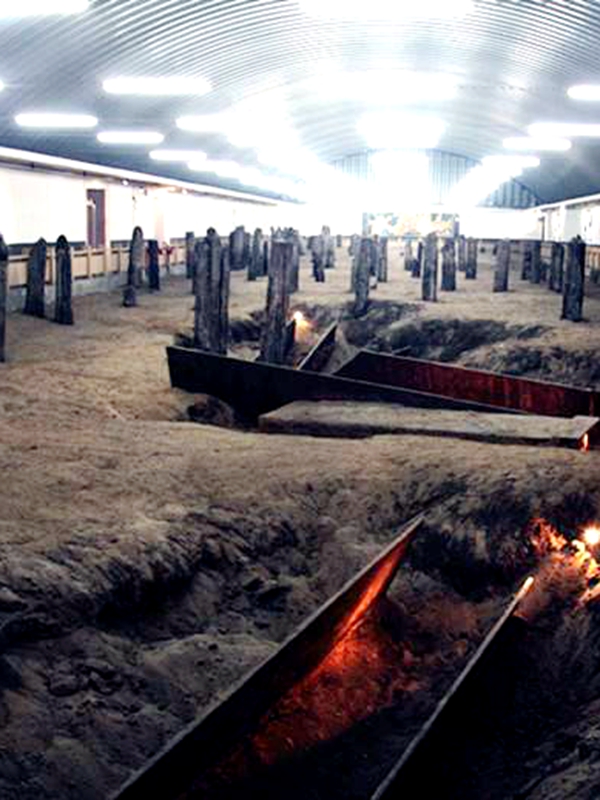 在沙河遗址,发掘的七根巨型铁槽,其高约1米、宽1米、长6.5米左右,板材厚3~4厘米。根据铸造常识这些铁槽正在水中进行天然时效,七件巨型铁槽是耐火保温的槽道,用以运送金属熔液浇铸,在宣区宫附近应该有一个大型的铸造厂。由于保密的需要,在历史文献中没有记载秦汉时期的铸造的辉煌历史,是一种非常惋惜的遗憾。