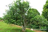 祭拜台仰望茶王,树干粗壮灰黑,枝繁叶茂,树冠如盖,生机盎然,丝毫没有衰老迹象。虽然相隔数十米,但茶王霸气凌天的宏大气场仍然震撼着心灵。俯瞰坡脚的寨子,远眺春意盎然的茶山,想起资料介绍的茶王村600年的种茶历史,认定周围大大小小的茶树都是茶王的子子孙孙;寨子世世代代的茶农都享受着茶王的福祉,得到茶王的荫庇。