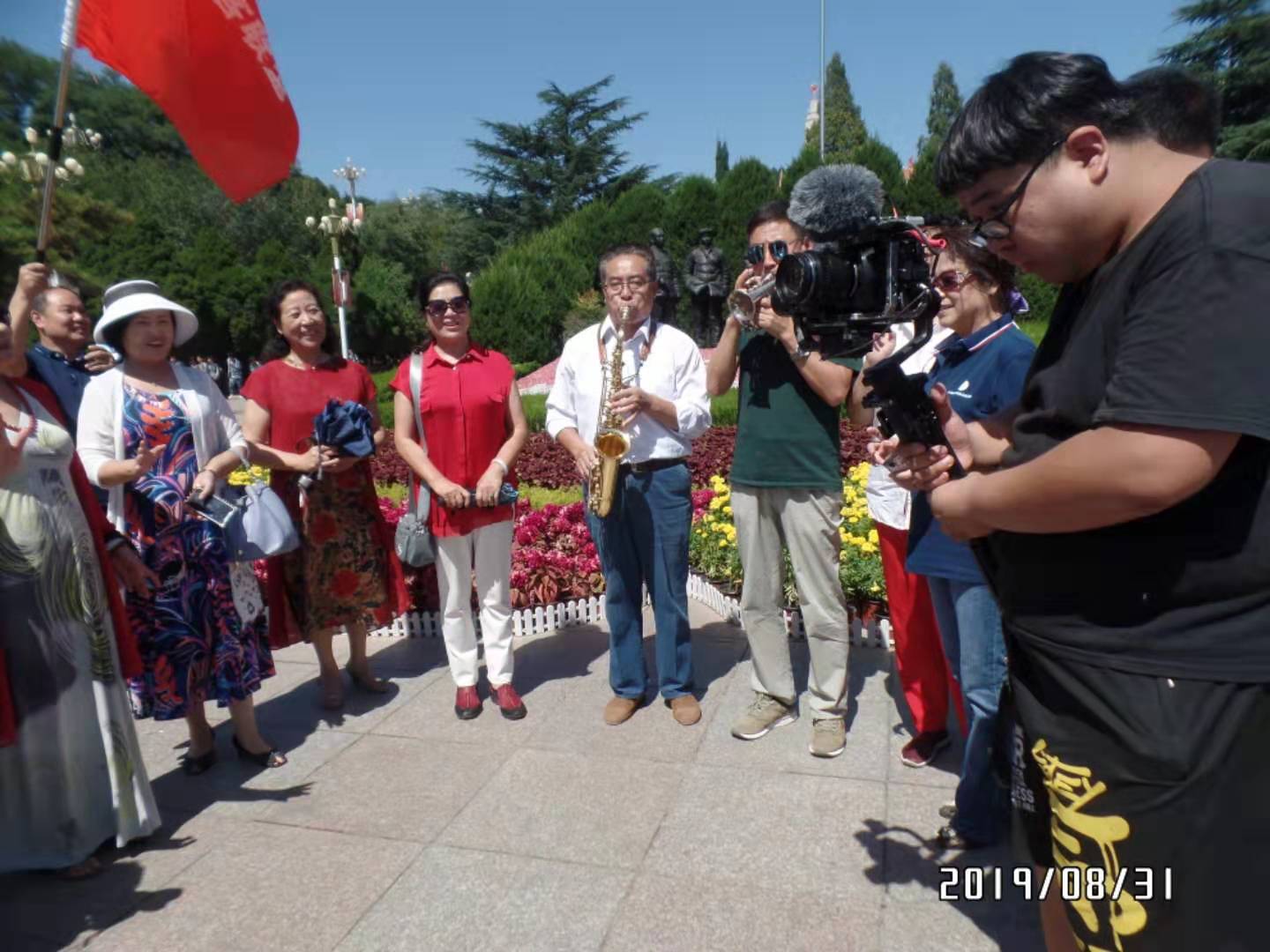 8月31日,在西柏坡革命圣地,我和周英华老师即兴与采风团互动,吹奏一曲《我和我的祖国》。