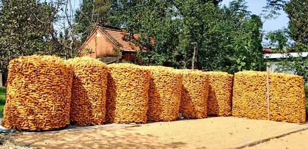 中秋的气温已平和温润,出城便是原野胜景。还在睡梦里的村庄,隐隐约约的树林,散落的风车均匀地摇晃着脑袋,缓缓升腾的晨雾如一根根银针细纱,汇集成流动飘逸的天使,给大地洒下密密匝匝的露珠,滋润着万物生灵。田里是张着小嘴等待收割的黄豆,路边的打谷场摆满了玉米棒,一圈圈、一垛垛,金灿灿、亮晶晶,蔚为壮观,呈现出一派丰收的喜悦。