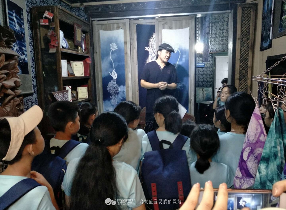 蜡魂展馆里,作品琳琅满目,有生活用品,有唐装服饰,有艺术挂件,有佛祖观音,楼上楼下转转,你会觉得这里很文艺、还有点小清新,很多蓝色调的蜡染品充斥在阁楼的每一个小角落里,等着你去发现。