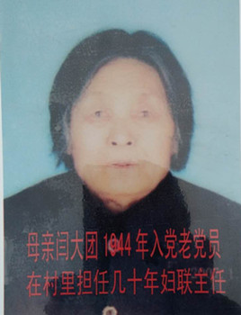 母亲1944年2月加入中国共产党,有着65年党龄。她的入党介绍人是她的老师、前张庄村张思杰。