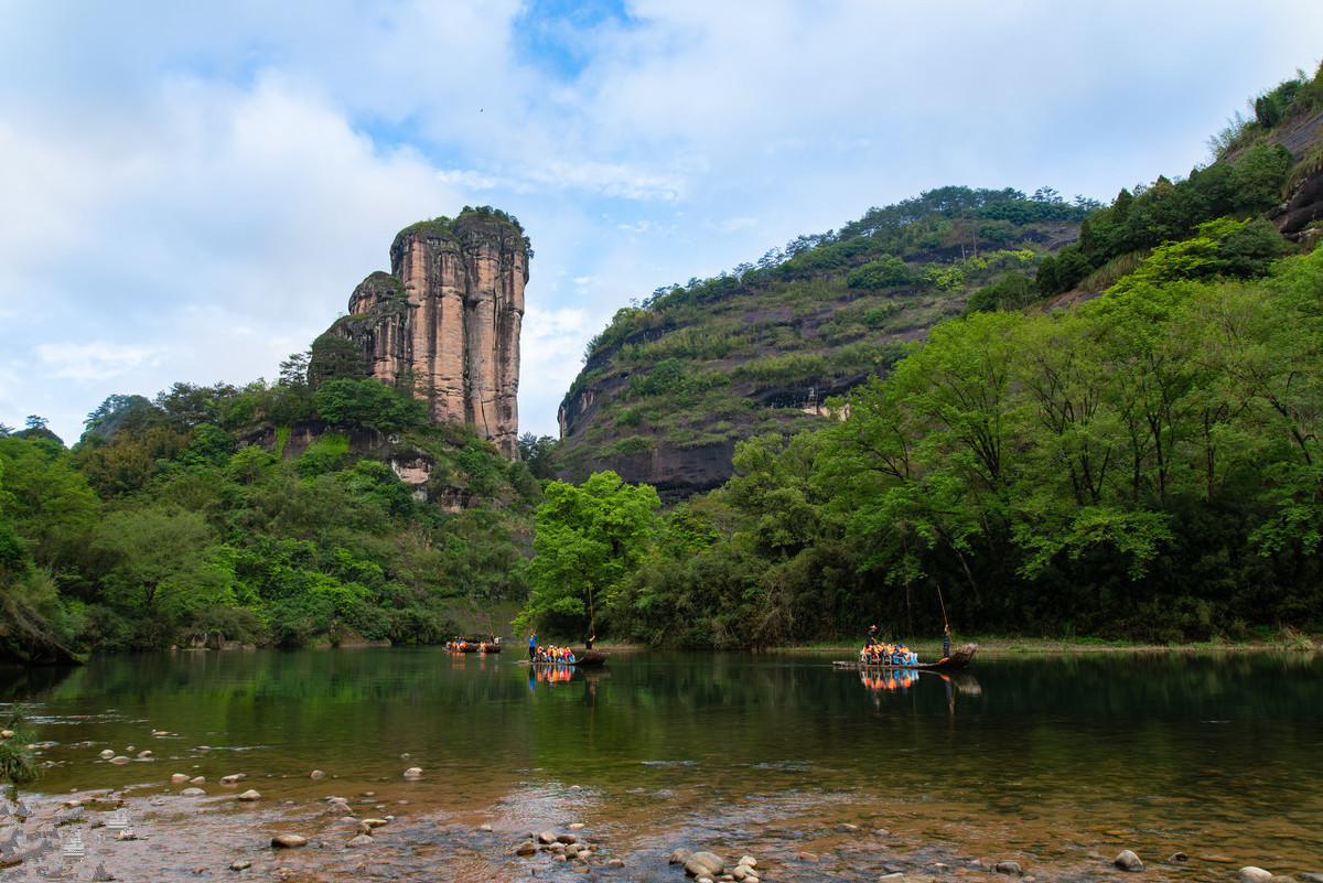 在我走过的名山中,武夷山似乎很苍老,巨大的岩石上是火山岩褐色石衣,是流水划出的深痕,是时光掩不住的岁月年轮。站在远处一看,那些石头都像戴着斗笠,披挂蓑衣的老人,苍颜素面,暮气沉沉。脚下的九曲清流,却是蜿蜒徘徊,勃勃生气,仿佛是这武夷老树生发的新芽。
