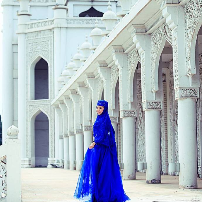 它有80多米高,用洁白的大理石建造,它的圆顶是金色的,主题呈白色。金顶与蔚蓝天空融合,洁白无边大理石庄严肃穆,震撼心田。大殿是展示和宣扬伊斯兰教义的又一重要场所,也是我们进行伊斯兰文化交流的一处园地。它利用声学原理圆形的建筑可以清晰传送讲经人的声音到最后一排。可见回族人民是多么聪明又能干。