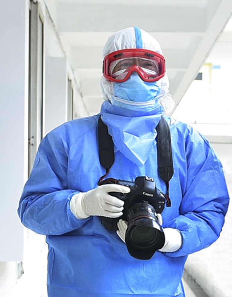 为了给全市多留下完整的抗击疫情珍贵影像资料,他与驰援武汉的医疗队和市区几家定点医院隔离病房的医护人员建立了微信联系,通过微信的形式,辅导、引导医护人员用手机及时拍摄好身边的工作场景,为媒体使用一线的新闻照片提供了方便,也弥补了资料中这一块照片的不足。