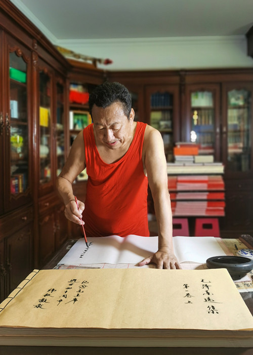 450万多字,2000多个寒暑,他就干这一件事。这是多么浩大的工程,多么坚韧的功夫,多么崇高的追求!郑伟权同志完成了常人认为不可能完成的事情,也是一件至今国内没人达到的抄写记录。