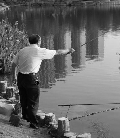 “吃饭罗,吃饭罗……”天色擦黑,老伴在餐厅里叫了好几遍,老冯依然在阳台上整理他的渔具。明天一早,几个老同学就要来接他去钓鱼。他虽已有许多年没摸过鱼竿,但那两下子料也不难,他好好准备一下,没准明天还能露一手。