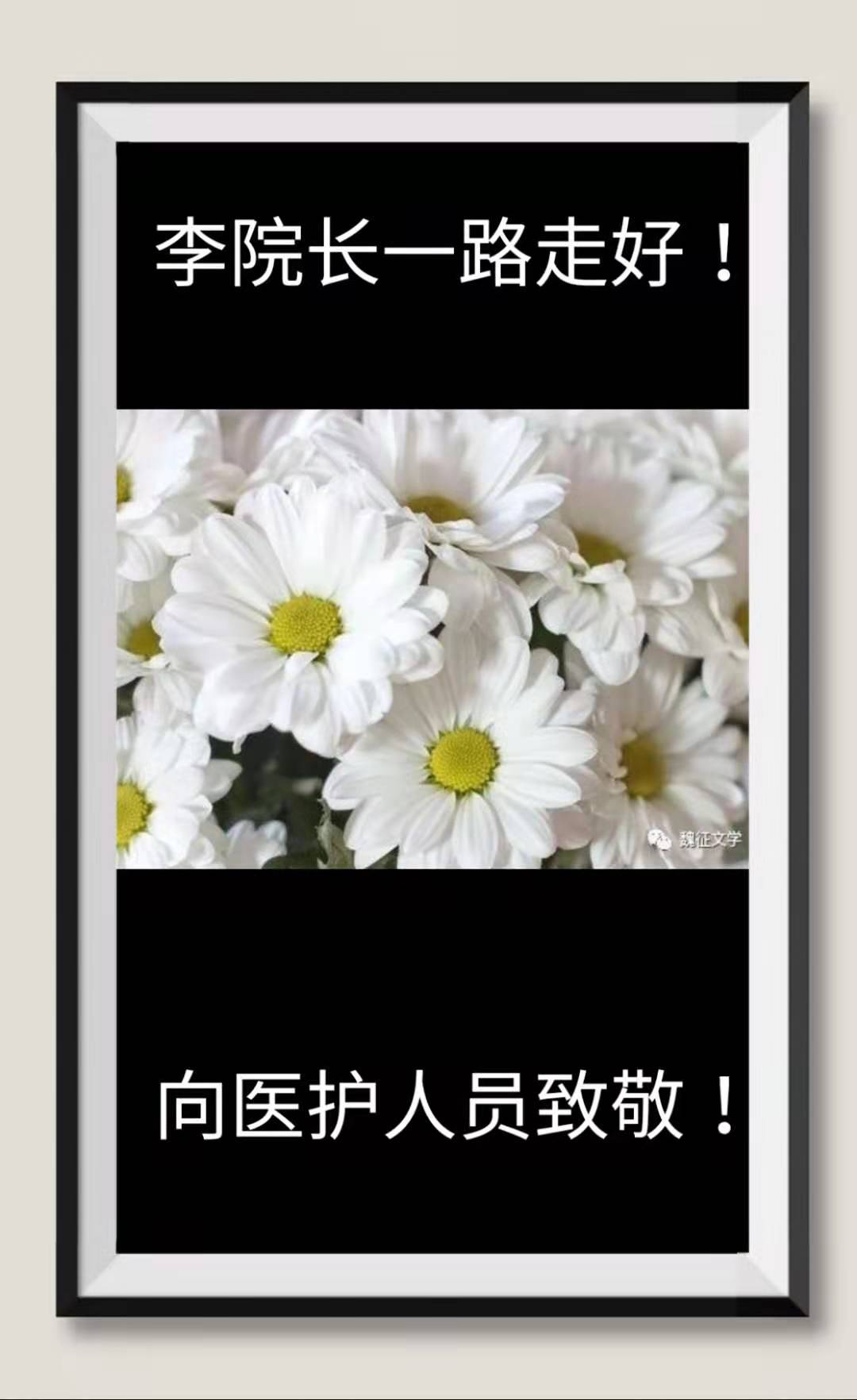 李献忠院长,是河北辛集市小章村人,1989年毕业于河北医学院临床医学专业,高高的个子,白皙的面孔,一双大眼睛很有神,我敢说他就是男人堆里出类拔萃的“美男子”,更重要的是,他对住院病人的嘘寒问暖,朴实关心,不由得让你如沐春风。一次老伴住院,李院长查房,老伴问他“李院长,你家是男汉女孩?”他说是女孩,在外地上大学。老伴快言快语,“女孩随爹,一定是个漂亮姑娘!”他是一个多么好的人啊,没想到这次牺牲在抗疫一线。回忆往事,让我们老俩泪流满面,相对无言。