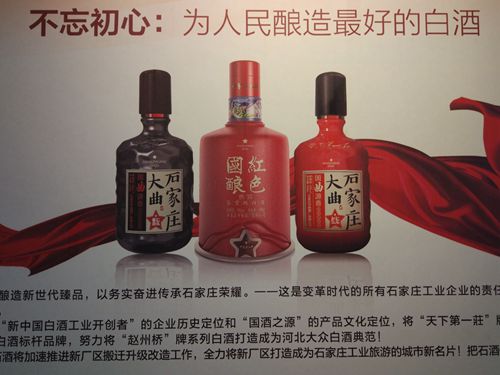 在两年前就看到有关北京红星二锅头与石家庄酒厂的渊源关系,当时就觉得没有什么奇怪的啊!石家庄这片沃土从来就是酒文化的滥觞之地,河北省如果没有几个拿得出手的名酒才是真正的悲哀呢!还好我们燕赵大地还有能呈现出衡水老白干、邯郸丛台酒、邢台泥坑酒、承德板城烧、保定刘伶醉、沧州御河春等优质白酒,而石家庄这座城市也有石家庄大曲、天庄酒让世人感受到玉液琼浆的美妙。