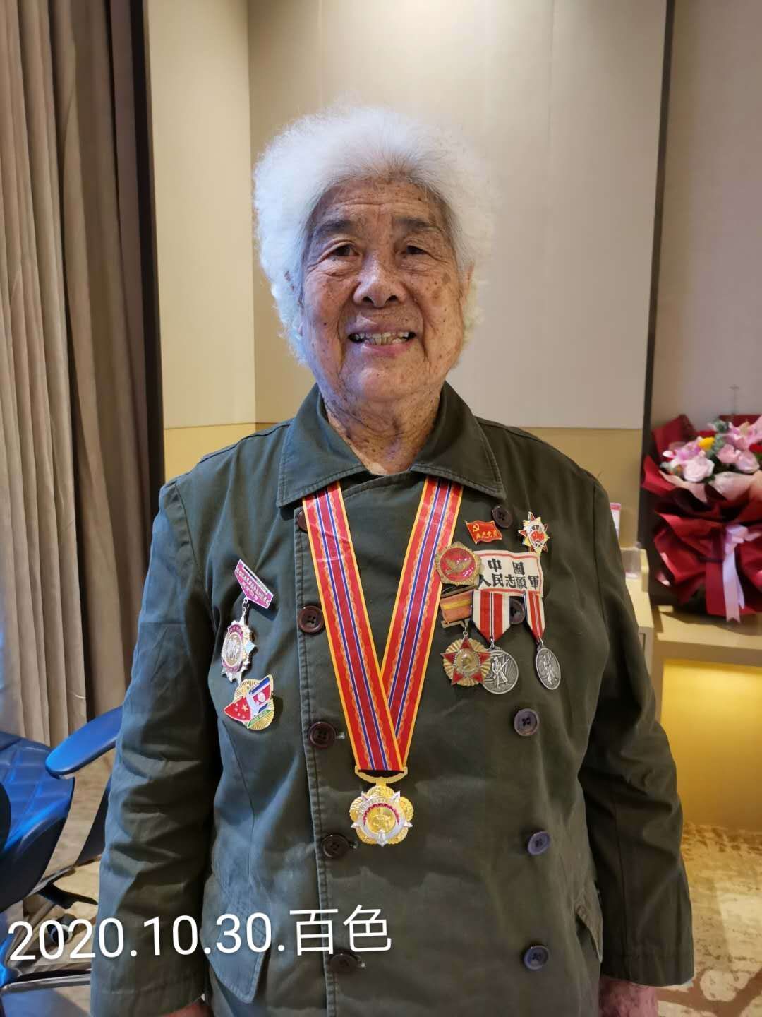 2020年在抗美援朝中国人民志愿军出国作战70周年,中共中央国务院、中央军委给活着的志愿军老兵发了一枚纪念章,望着这枚沉甸甸的纪念章,我想是那些牺牲的战友用鲜血和生命换来的胜利纪念章,他们才是真正的英雄。英雄的丰碑应该代代铭记相传。我是中国人民志愿军的女战士,经过抗美援朝战场的考验,在血与火、生与死、艰苦的战斗中锤炼成长,我要永远保持人民战士的本色,退休不褪色,退休不退志,做一个合格的共产党员,永远跟党走。