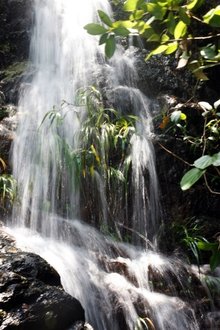 山顶那枝繁叶茂的“愿望树”,红绦系挂的“心愿包”,催人奋发的“吉祥鼓”,祈福纳祥的“平安钟”。观音山奇特魂丽的自然风光和积淀丰厚的吉祥文化令人赞叹。我点燃一炷香,虔诚地祈祷,山间一片墨绿,巨大的轮廓之下,森林像是泼洒的浓墨,在庄严的宗教风景区更显神秘。鸟儿飞翔着唱歌,躲在树丛,那啾啾的鸣叫声清脆悦耳。一阵清风吹来,带着丝丝凉意,爬山的感觉心旷神怡,眺望远方,远处是镇区盒子似的房子的全景风貌。观音山森林公园的生态奇趣,每次来都有新的发现。在36级瀑布的人字瀑下,有一深潭,潭深多少,无人敢探。听山脚下老农讲,大旱之年也不曾枯渴。有一年大家好奇,聚集几名青年,用一个上午来用石块“沉潭”。汉子们累得筋疲力尽,然后用麻绳来探底,依然深不可测。从此便得名“龙潜潭”。
