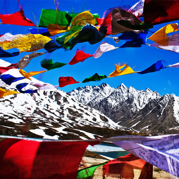 去过西藏的人,谁也不会忘记布达拉宫的金顶;大昭寺的唐蕃会盟碑、松赞干布和文成公主的塑像;罗布林卡汉族特色的鸟语花香;还有圣洁的珠穆朗玛雪山:碧蓝的纳木错世界最高的咸水天湖的美景……人们对西藏有着无数种幻想,对于西藏的神秘和神圣也有着不同的定义,可我却对西藏的经幡情有独钟。它同银光闪闪的雪峰、绿毯茵茵的草甸、浩阔茫茫的漠野、金光灿灿的庙宇一样,成为藏区自然和人文环境的一种独有而鲜明的象征。