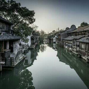 一片荷叶点缀在蔓延的河道里,沿着纵横交错的水街自由伸展,泛一叶小舟,一扭一扭摇晃在弯曲的水乡,船在水中行,景在水中游,船娘轻柔的歌声,伴随着划桨的水声,晃动在心里,醉在水色回忆里。