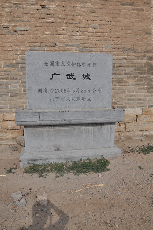 从山上延伸下来的长城,越过河流,跨过公路,伸向远方。在一片残垣断壁和碎砖烂瓦中,依稀可见城墙、门洞、街道的模样。这是新广武城的所在,雄姿已经不再。距其不远处,还有一座旧广武城。出乎意料的是,旧广武城保存得相当完好。那是建在平地上的一座高墙大城,原为粘土夯筑,后用砖石包砌。垛口、马面、望洞、射孔等一应俱全,城内的四街八巷保留原制,还有人居住,城门依然能自由开关。但,所有古城所不同的是,东、南、西三面设有城门,北面却无城门,那是为了阻挡来自北方的敌人。该城为全国重点文物保护单位,是辽金时期遗存下来唯一完整的古城。