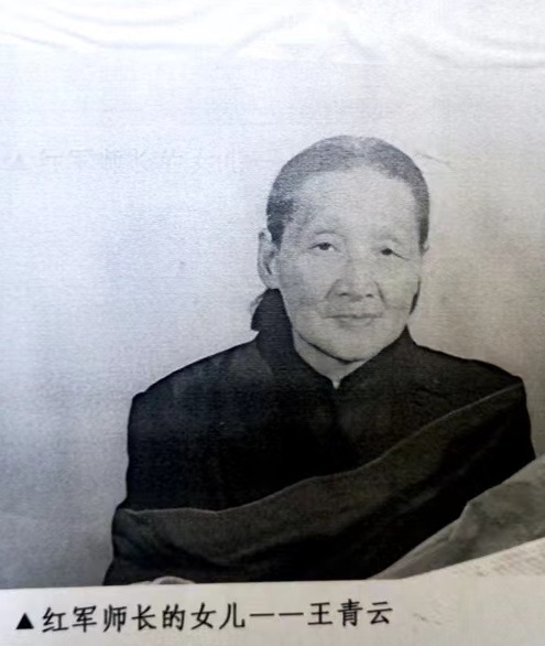 回到报社,我立刻给堂弟夫妻写信。信发出一个星期,一天晚上,堂弟夫妻来到北京,那时我亲弟弟毛文涛带一位朋友也住在我们家里。小小住宅一下子来了4位客人。我爱人忙着腾房子,安床铺,缝被子,备饮食,将客人安顿妥当。第二天我陪堂弟夫妻来到张明才同志家,张老看到红军后代,非常高兴,非常热情,像见到自己的女儿,问长问短,亲自动手写了证明,加盖了印章。堂弟夫妻高高兴兴回到房县,后来从房县媒体报道得知,我弟媳烈属身份还得到另外渠道的证明,特别昰曾在王一鸣师长手下当过营长的张德当年作战负伤,在福音堂红军医院,汤爱德军医为他疗伤一个月,他在孩子满月时还抱过孩子,见孩子长得像她妈妈。张德离休前为武汉警备区副司令员,他的证明更具说服力。郭青云的烈属身份终于得到政府民政部门的承认,送来王一鸣的烈士证明书,她享受应有的烈士家属优待。郭青云也正式改名为王青云,她把最小的一儿一女,也改姓王,纪念她的红军师长父亲。最后县里有关部门把她儿子王凯和女儿王丽都安排了工作,夫妻晚年生活无忧。县城的小学生们常来看望和慰问王奶奶。房县苏维埃成立七十周年“苏区情”活动,中央电视台老区慰问演出,还特地请出了这位七十岁的王奶奶,王青云还被邀请和柳直荀烈士的儿媳、孙女共进午餐。她说,这是我最荣誉的一天。她在话筒前对上万人说,我是革命烈士的女儿,但我是房县苏区人民奶水养大的。