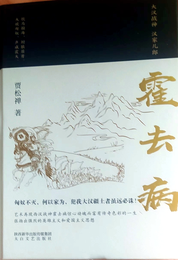 中国作家协会会员、陕西著名军旅作家贾松禅,利用二十余载春秋,九易其稿,创作了长篇历史小说《霍去病》,刚刚上市的第三版,作为省委宣传部“丝路之魂•丝绸之路大型文学创作出版工程”和省委省政府外交礼品图书项目,由陕西出版集团、太白文艺出版社出版发行,小说围绕霍去病率领大汉骑兵同匈奴作战的经历以及同火绒在匈汉战争中的生死情仇,以生动传神的笔墨刻画了霍去病、火绒、卫青、伊稚斜、藉若侯产等具有鲜明个性的历史人物,全方位、多角度地描述了当时轰轰烈烈的战争场。展示了匈汉两地宫廷内外军事与政治势力的此消彼长,将权力争夺中人性的残酷与复杂写得淋淋漓尽致。再现了西汉青年战神霍去病惊心动魄而又传奇精彩的一生。