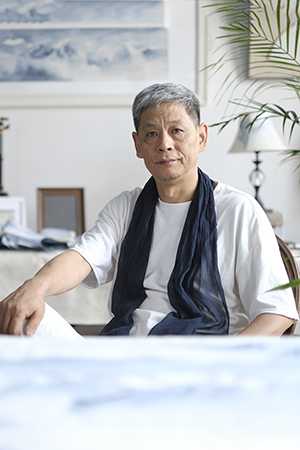此后,我的画风开始“突变”,独立的语言系统开始显现。我的画中不再有松树、燕子、小桥流水等等,通通没有了。我不再做“装修工”了,不在做“小情调”了,我要画“心”。“古韵弹墨”是师法古人,“遇化黄山”是师法自然,到了“水韵青花”,就是师法我“心”了。这也就是我的人生三阶段,从“实”到“虚”,再到“空”。当然也是绘画意识的转换过程,就是从“主观的客观化”到“客观的主观化”。过去,我用技法把山水画好,就是主观客观化。现在,我感觉“天地与我为一”,就上升到精神层面了,以我“心”所动,画“我心所思”,在画里见天地,见自我。
