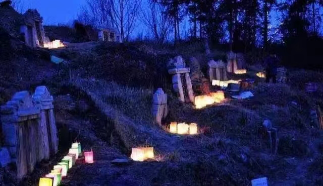 这三四十年来,我常年在外奔波,或学习,或工作,或生活,经常碰不到送灯的日子,只有一年在乡下过十五,自然也赶上了送灯习俗。这天,太阳西下时,我和弟弟提着特制的防风灯,还有熏香、黄纸、鞭炮等出发了……沟沟坎坎,翻山越岭,尽管去坟地的路不好走,又是给四五代先辈送,也不觉得怎么累……这是对先辈的敬仰、对亲情的传承,更是心的归宿。
