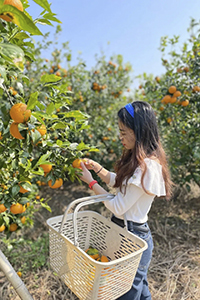 一进葡萄园,就听见了优美的歌声,我们好奇地问:“哪来的歌声?”她边麻溜地递给我们每个人一把长剪刀,一个花筐,说,“这是迷你音响,放歌是让进园的人心情愉悦地采摘,另外我想让这些葡萄听着歌成长。”说完,她有些不好意思地补充一句,“人类生孩子讲究胎教,我也把这些水果当成了自己的孩子。”