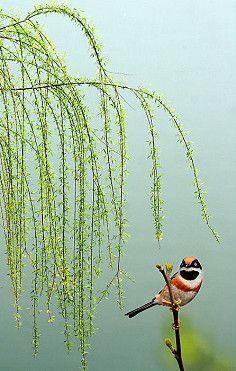 内心里突然有了着落。先看那绿,从树枝上旁逸斜出,嫩芽上有着鹅黄的底子,淡淡地散发着春的味道。再看那绿,鲜润无比,仿佛把蔚蓝的天融了一块。我想起了丰子恺笔下的《杨柳》一文,写春色曰“陌头杨柳”;写春景曰“万树垂杨”;称春曰“柳条春”。作者赞美的柳的下垂的姿态,不管拔得多高,都要垂下来。这有别于其它植物的浮华。