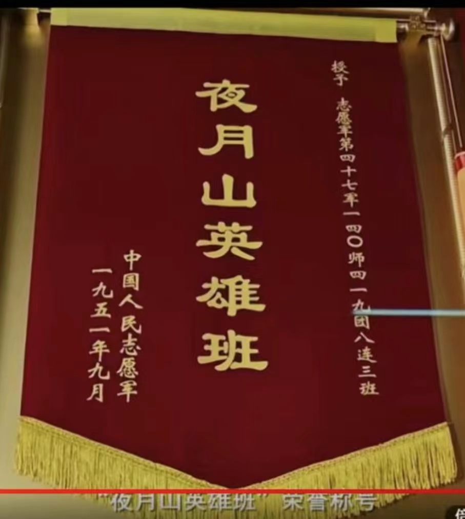 是“夜月山”这个极富诗意的名字,引我走近这面战旗。顷刻间,它的故事在我心中掀起无法平息的狂涛巨澜,我的脑海充满了那次战斗的硝烟。