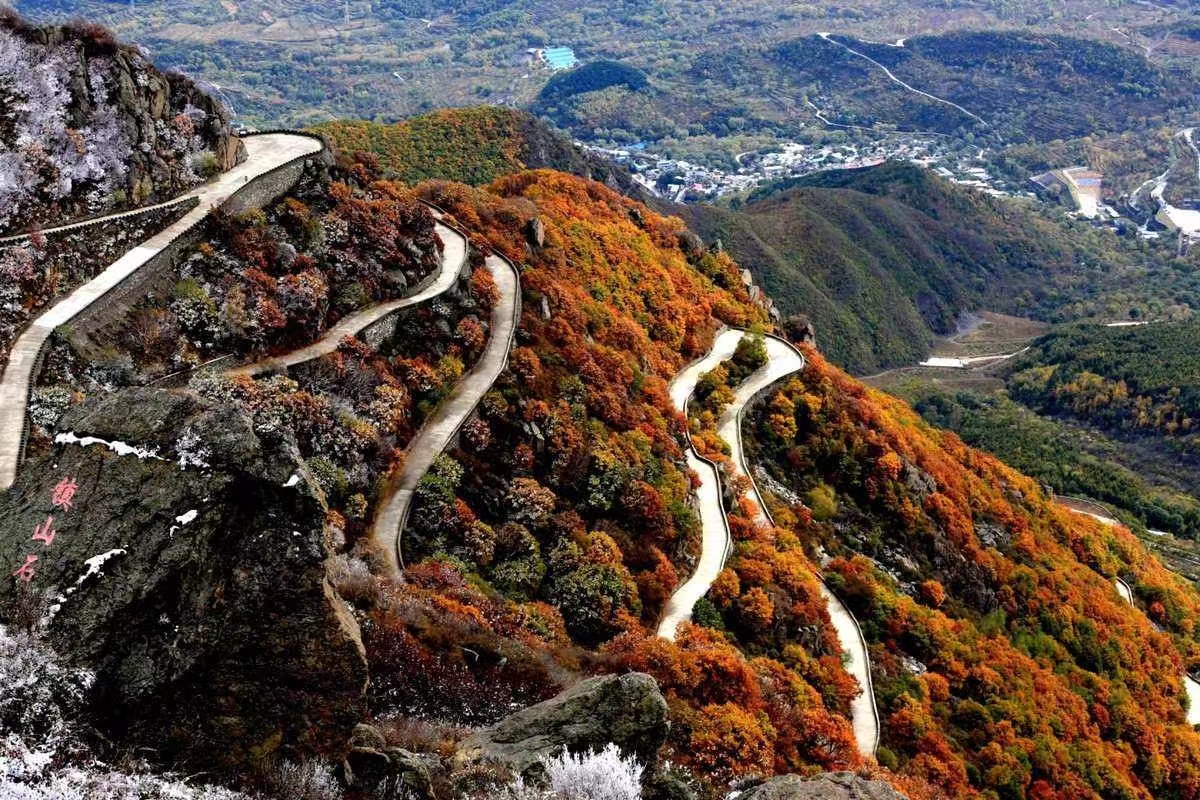 还有十余里的路程,因是大白天,清清楚楚的看见盘山公路间穿插着一条直直的羊肠小道。这条小路把公路的里程缩减了一大半,这是那俩阿姨给指引的。可惜头天我们走过的那些公路也有这样的小路穿插,如果我们早知道,就不会走得这么艰辛了。