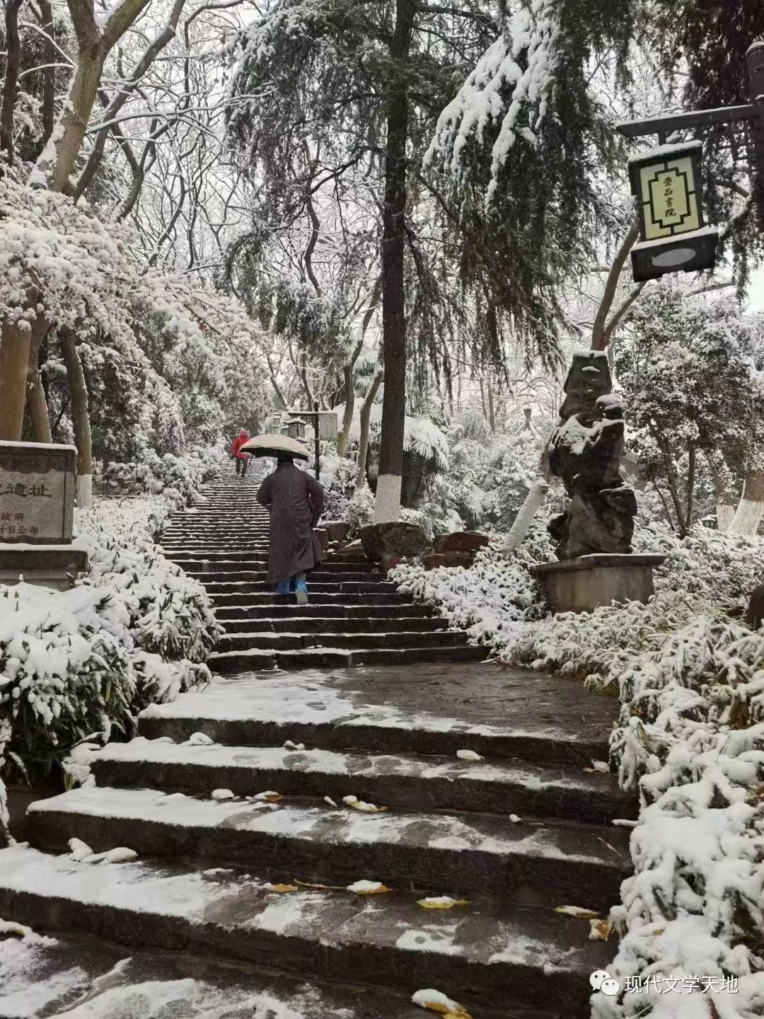 我从不同角度拍摄,忽然听到一个男人温和的说话声音:“老大伯,别滑倒!小心点!上了岁数。”我转头,雪中一个瘦弱的老人家正慢慢地走路,那个说话的中年男子正是对着他说话,此时,男子已经走过去,搀扶着老人家的胳膊,帮他小心走过脚下一片冰冻的雪路。老人家感激地应承。看起来他们之间是陌生人。我不知道老人家心里暖不暖,我是被那男人简短的话语简单的行为暖到了几分。他穿得不够好,长得不怎样,更没有什么气质了。雪中即景,我看到了他所带来的好风景。我觉得,这好风景也是因为落雪而来。我相信,雪景的大美和雪情之爱,肯定是会传染给人的。否则,我怎么偏偏在踏雪的时候遇到好人好事呢?