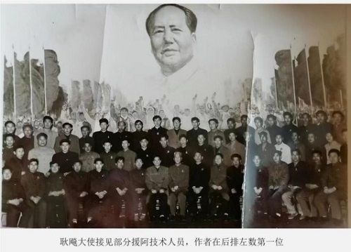1、耿飚大使接见部分援阿技术人员,作者在后排左数第一位