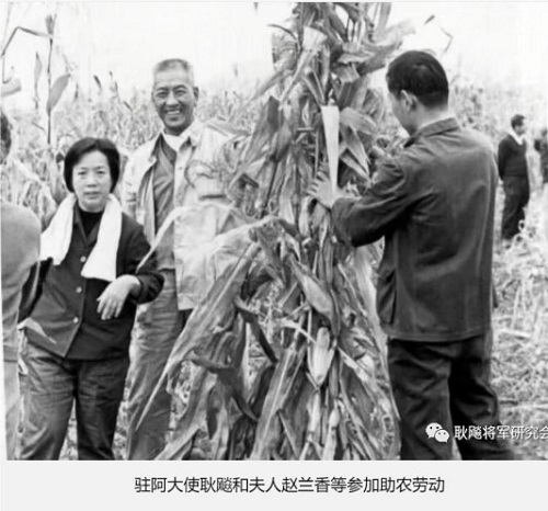 3、驻阿大使耿飚和夫人赵兰香等参加助农劳动