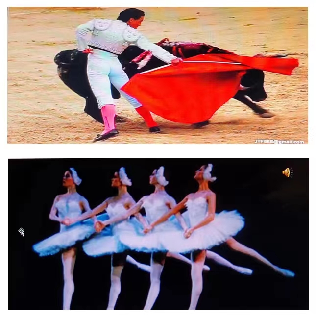 如果说《四小天鹅舞曲》是柔美的极致,那么,《斗牛士之歌》就是阳刚的顶点。弥尔顿说:“音乐中蕴藏着如此悦耳的催人奋进的力量。”这种听觉和视觉的冲击力,没有人会无动于衷!它能在瞬间把人的萎靡不振一扫而光,给人勇敢、挺拔、坚强、朝气和力量。