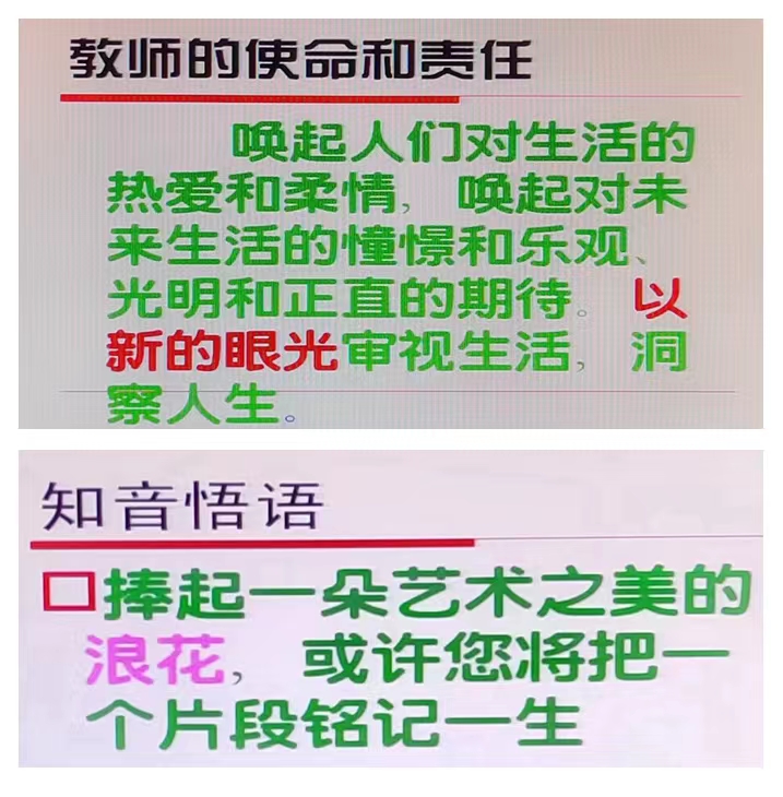 画面配发,要充分巧妙恰到好处。声音是抽象的,画面是具体的,直观的,运用得好,是提升欣赏质量的最为有力的辅助手段。讲授者的所有意图都可以通过它去传达,所以每一幅画面的选择都要精致,阐述深刻精当,画面精彩感人。