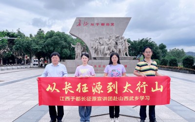 今天是5月22日,于都长征源宣讲团出发太行山。上午,我们调研组在纪念园里参加“走进太行山”出发仪式,面对耸立巍巍的纪念碑,我伫立许久,仿佛听到了“风在吼,马在叫,黄河在咆哮”那令人震撼的交响曲……顿时内心激情澎湃,这时我们拉起横幅,上面写着:从长征源到太行山——于都县长征源宣讲团赴山西武乡学习。