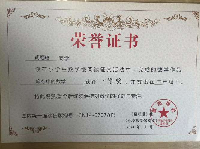这一年,我是班级里负责管纪律的,有同学违反纪律的,我会对违反纪律的同学指出来,对经常犯错的同学,用一个小本子记下来。我平时喜欢看课外书,有些故事很吸引人,慢慢养成阅读的好习惯。今年一月,我写的作文《旅行中的数学》在学校的小学生数学阅读征文中获得一等奖,并在二年级刊物上发表,还拿到了50元稿费,这是我读书以来第一次稿费。在本学期心理周活动中,我画的画得了三等奖。在平时的考试中,我的语文数学两门课,基本稳定在95分左右,但是,考满分的很少。读书是一辈子的事,爸妈没有给我太大的压力,无论怎么样,我对读书是喜欢的,也是很认真的。老师说,读书不是为了考满分,而是为了养成好习惯,积极上进,有自己的目标。我对老师和家长说的话理解得不多,大概这就是一个成长的过程吧。