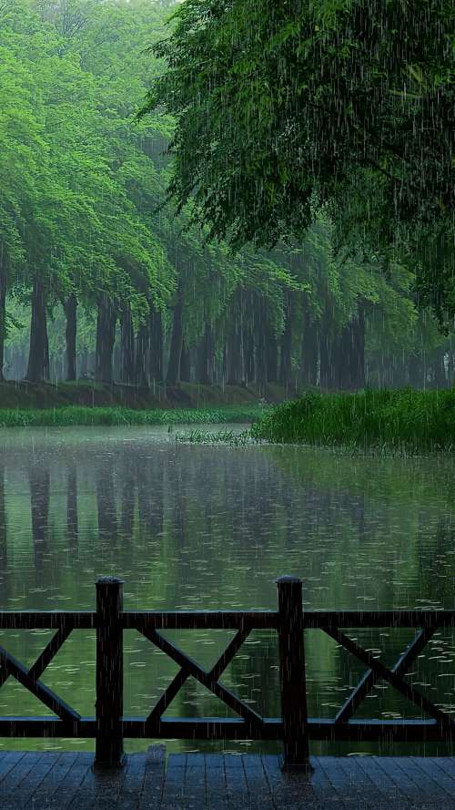 四周雾气笼罩,雨雾濛濛,凄凉孤寂。只有雨声哗哗啦啦,格外清晰。