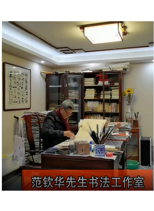 老范不仅带领大家学书法,自己也勤下功夫。他原本就有着不错的书法底子,当了书法院的“头儿”之后,更加广交良师益友。他把家里的整层地下室辟为写字室,常常一写就是“白加黑”。