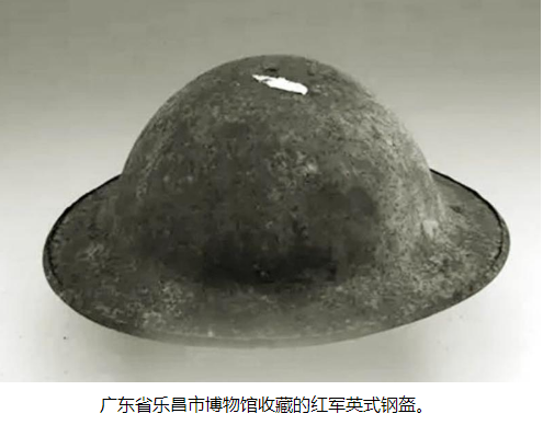 成立之初总兵力约1480人的干部团,因其特殊地位在装备方面尤其受到优待。除优先配备MP18冲锋枪等自动武器外,还配发钢盔,如此装备水平即便在当时的国民党军中亦属上乘。干部团是目前所能确认红军中唯一配发钢盔的队伍,钢盔为其最显著特征,如此“亮瞎眼”的形象给对阵的国民党军造成巨大心理震慑。毫无疑义,钢盔来源为长征前缴获。影视作品中采用德式钢盔,但经查阅史料未发现明确记载及历史照片,所以无法确定钢盔型号。经对相关史料综合分析,笔者认为有2个观点站得住脚。一是英式钢盔的可能性比德式大。有资料显示,英式“浅碟”钢盔进入中国比德式钢盔早,在红军长征开始前,国民党不同派系军队已有批量装备,而同时期国民党军装备德盔鲜见记载,因此红军在反“围剿”等作战中缴获英式钢盔的可能性更大。此外,红军配备英式钢盔有实物为证。广东省乐昌市博物馆收藏有一顶英式钢盔,其来源为1934年11月上旬红军长征队伍经过乐昌白石镇三界墟村,在老乡家借宿休整,临行时红军官兵拿不出钱财报答老乡,遂留下这顶缴获的英式钢盔作为纪念。钢盔于1986年被当地党史办同志征集,1995年被评定为国家三级文物。虽然无法确认赠予老乡钢盔的红军官兵属于干部团,但是至少说明长征之初红军拥有英式钢盔。
