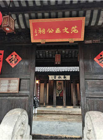 走进惠山古镇的历史文化街区,有常见的白墙黑瓦、石板铺路,却无小桥流水、舟楫穿行。同样也是店铺林立,飘荡着浓厚的商业气息。但,走着走着便有了新的发现。路两侧有许多私人祠堂,建筑各异,门当户对,成群连片,应接不暇。大多对外开放,免费参观,随意进出。看到有范文正公祠,顿时来了兴趣,私自脱离家人队伍,钻进祠堂内部。范文正公就是大名鼎鼎的范仲淹,曾经在岳阳楼和应天书院两次与他相遇,没想到在惠山古镇又碰面了。他的生平和事迹不用多说,北宋时期的政治家和文学家,“先天下之忧而忧,后天下之乐而乐”是他的名言警句,为国为民分忧是他的人生目标,他是读书和做官的典范。我心中的疑问是:这里为什么建有他的祠堂?他的祖籍是陕西,出生地是山东,做官在苏州,逝世在上任颍州的途中,都与无锡不搭界。过门厅,经敦叙堂、后乐堂到先忧亭,一派宋代建筑风格和江南园林格局,整体呈现出是对范仲淹的无限景仰与怀念。从建祠经过得知,该祠为范仲淹裔孙所建。其祖上的一支血脉迁徙到无锡惠山古镇,为其家族出现如此杰出的人物而自豪,出资建起范文正公祠,得到当地人的认同与祭祀,因而保存至今。范仲淹作为文人和官吏的优秀代表,既属于范氏家族又属于中华民族,千秋师表,万世景仰。