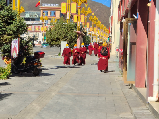色达县城的建设应该说比较现代化了,成色较新,也就是近几十年的建筑。街上大多是藏人和喇嘛,与别的热闹城市比起来,格外显得安静。