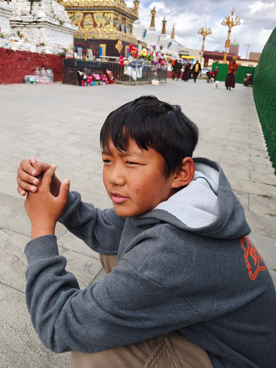 街头上有专门的寺庙和白塔,供人们祭拜。我看到藏民们常常围绕着白塔和庙堂绕圈行走,不知何意?就向一位见过世面的十来岁的男孩询问,他的回答是,在这里每一个动物离世,不论是人还是狗或牛,都要为其祈祷,转圈行走就是一种祈祷的形式,每一个人至少要走三圈。那围着神山转,祈祷的的目标就更大了,涉及到今生来世的幸福。有个信仰寄托,还真不错,从某种意义上说,自己掌握了自己的命运。