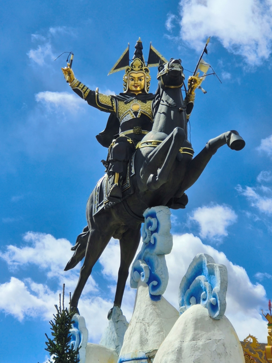 不仅如此,在色达县城中心还有一座宏伟的民族博物馆,叫“格萨尔文化艺术中心”,里面以纪念格萨尔王的内容为主。门口就有格萨尔王麾下的十三员猛将的塑像,个个生龙活虎,勇不可当。